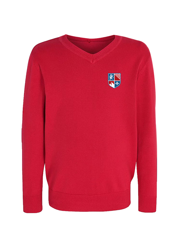 Red Cotton Rich V Neck School Jumper